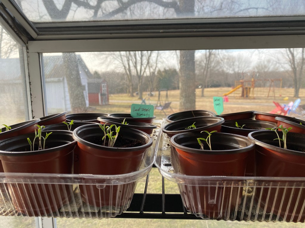 My daughter and I have also started a small project of growing micro greens in our laundry room window. Our first trial is with a small plastic tray full of chia seedlings. If all goes well, we plan to expand and grow other greens to share and sell to our friends and neighbors.